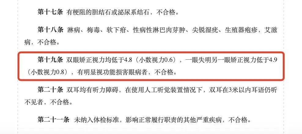 一、普通岗位视力要求